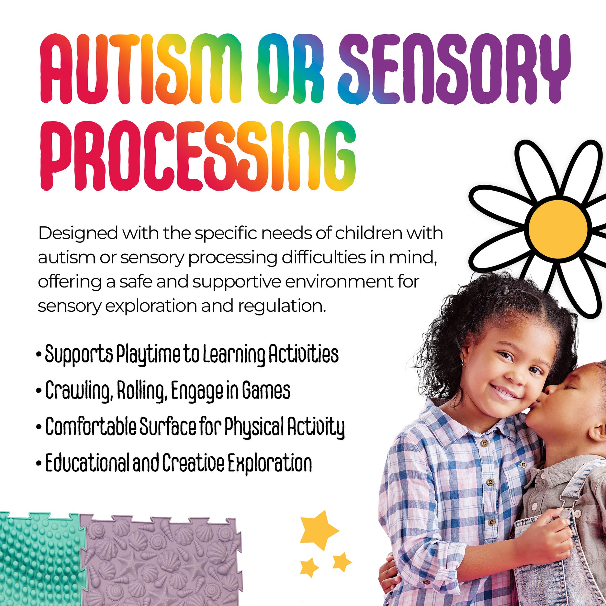 Transform playtime into a soothing sensory experience with the integrated acupressure points on the MagicMeadow Mat. Designed to target key pressure points on the feet, these gentle nodules provide a calming massage effect that promotes relaxation and sensory regulation. Whether used as a standalone activity or incorporated into sensory therapy routines, the foot massage feature offers a therapeutic benefit for children with autism or sensory processing challenges.